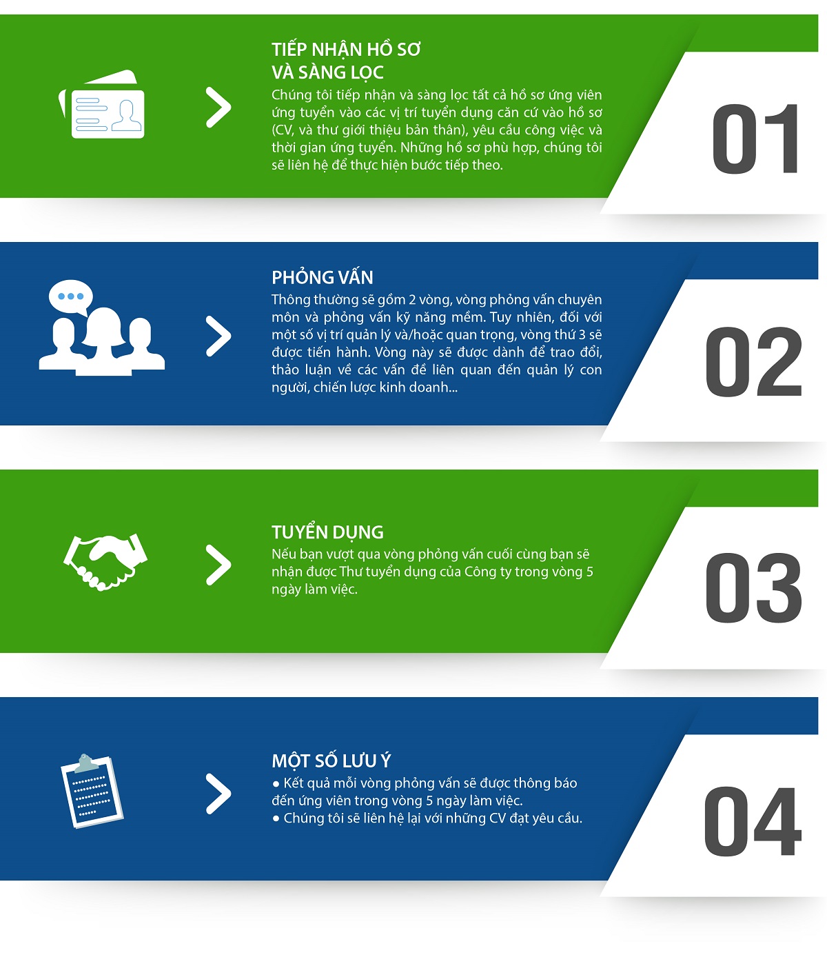 Medical Việt Nam không chỉ đánh giá cao những cá nhân có năng lực chuyên môn mà còn tìm kiếm những con người biết chia sẻ và đồng hành cùng những giá trị cốt lõi mà chúng tôi hướng tới. Với mục tiêu lựa chọn được những ứng viên phù hợp nhất gia nhập đại gia đình Medical Việt Nam, chúng tôi áp dụng một quy trình tuyển dụng công bằng, minh bạch: