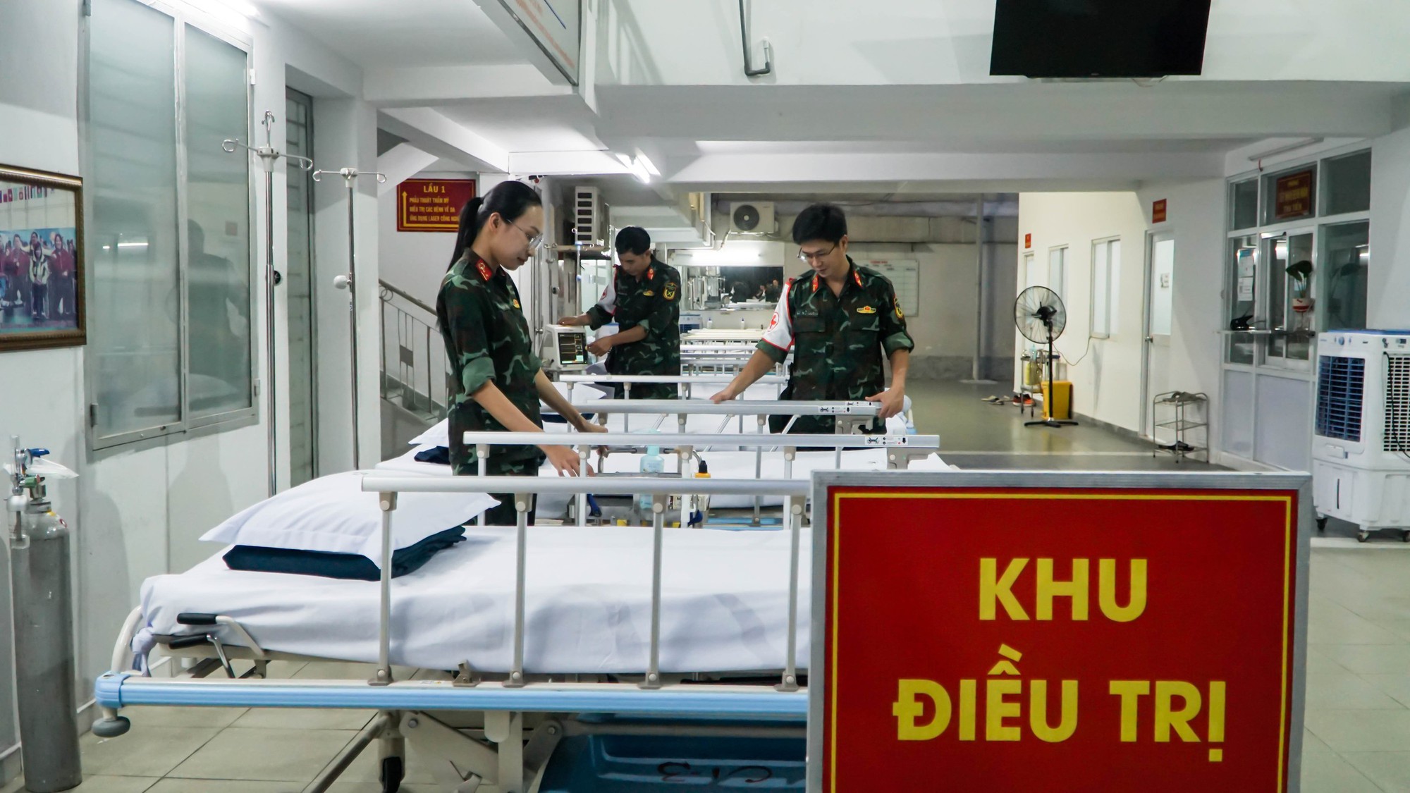 Đại tá, BS-CK II Vũ Đình Ân, Chủ nhiệm phụ trách khoa Hồi sức tích cực, cho biết trạm y tế dã chiến có 17 thành viên, gồm bác sĩ, điều dưỡng, tài xế và cán bộ hậu cần. Trạm y tế túc trực 24/24, sẵn sàng xử lý các sự cố, thảm họa có thể xảy ra tại nơi đông người như cháy nổ, sập khán đài,...