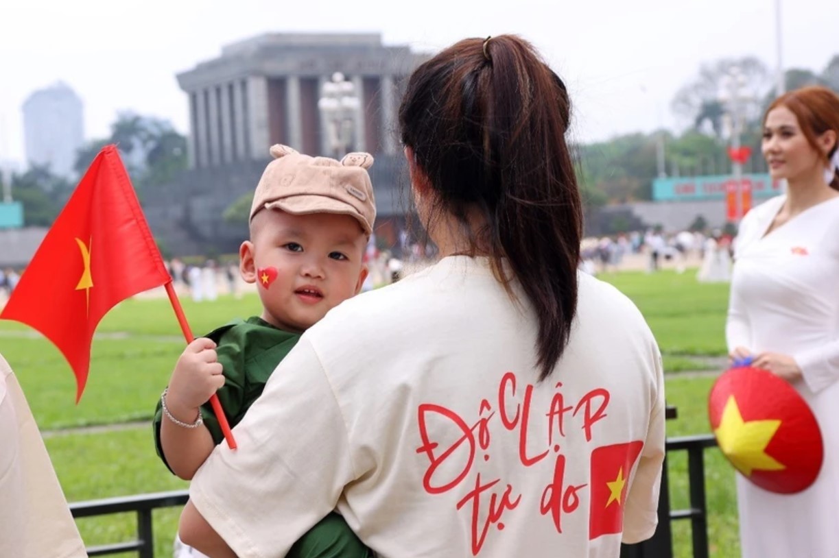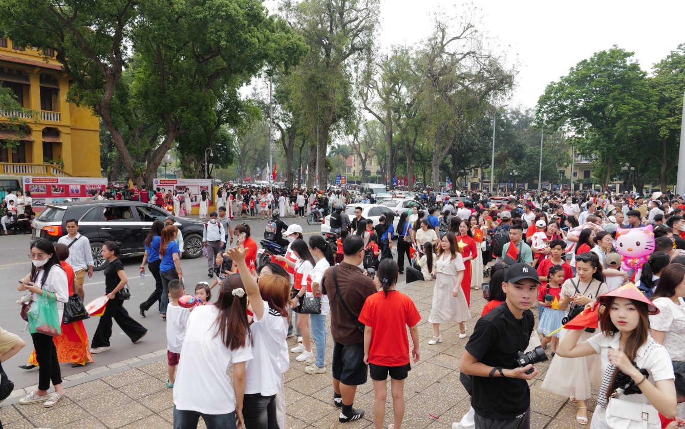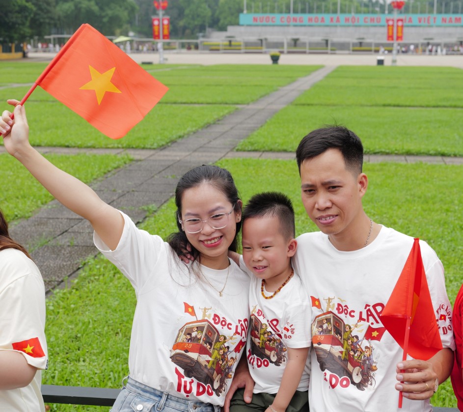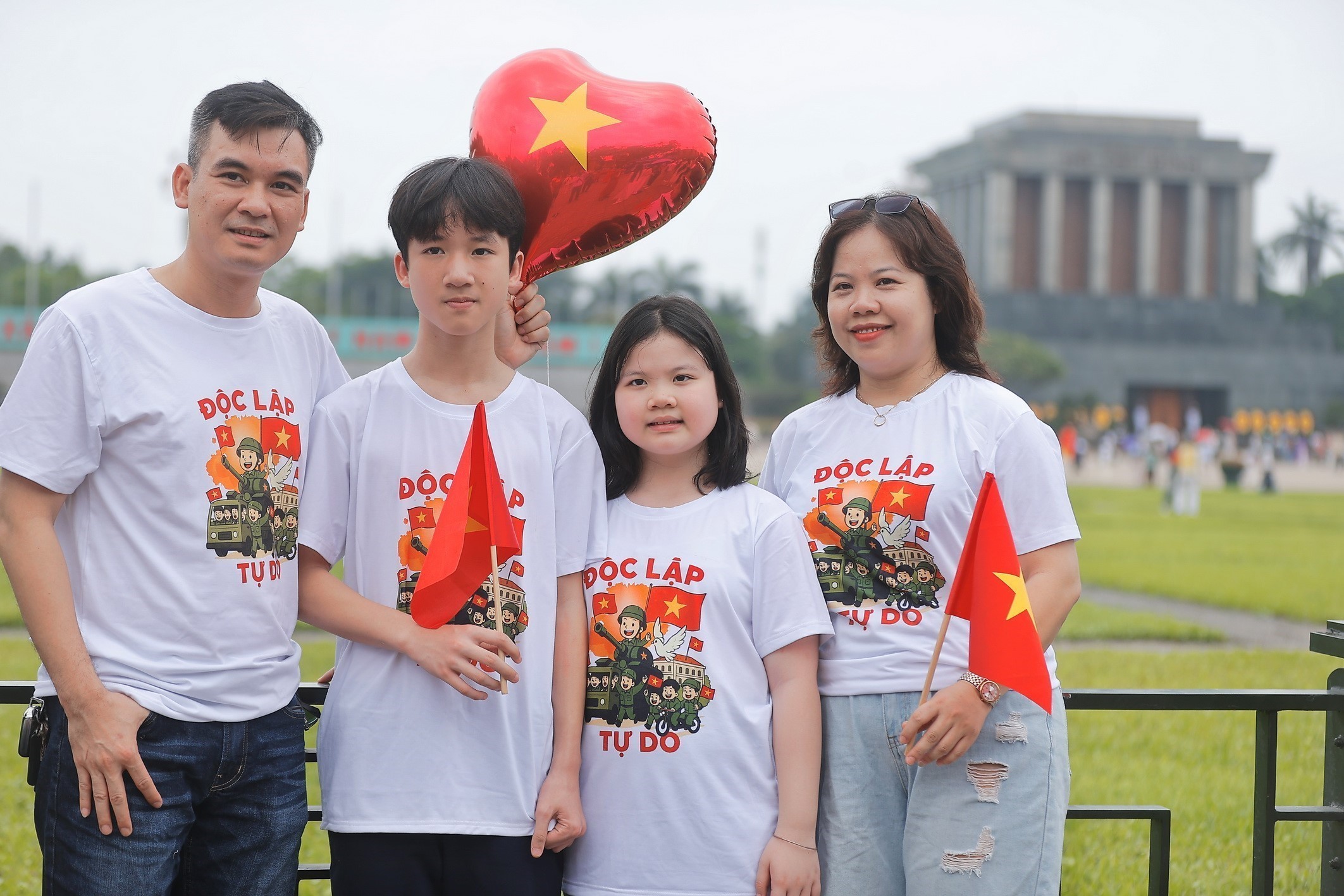 Đường Độc Lập, phía trước quảng trường Ba Đình đông nghịt người dân ở mọi lứa tuổi. Nhiều người đứng kín vỉa hè chờ đợi đến lượt vào vị trí hướng về Lăng Bác để chụp ảnh. Thời tiết Hà Nội trong ngày dịu mát, 24-30 độ C, nên lượng người đến đây cũng đông hơn những ngày trước đó.