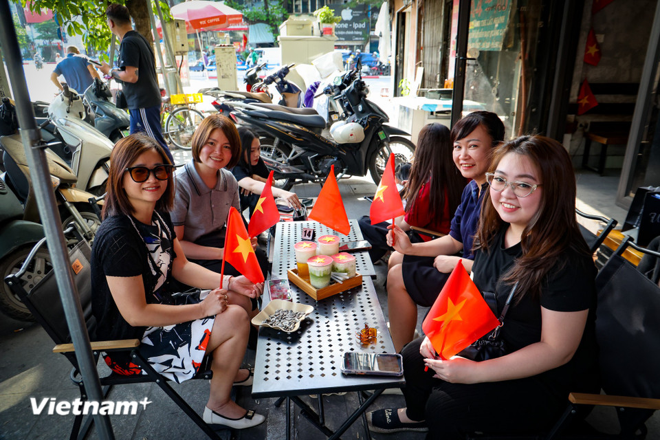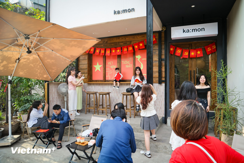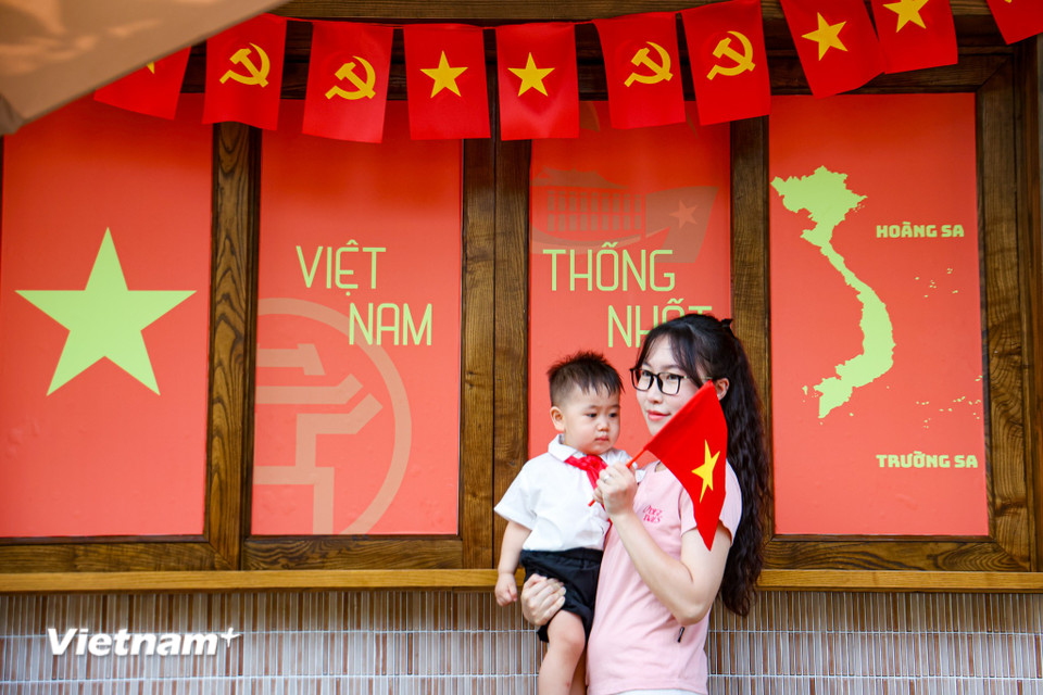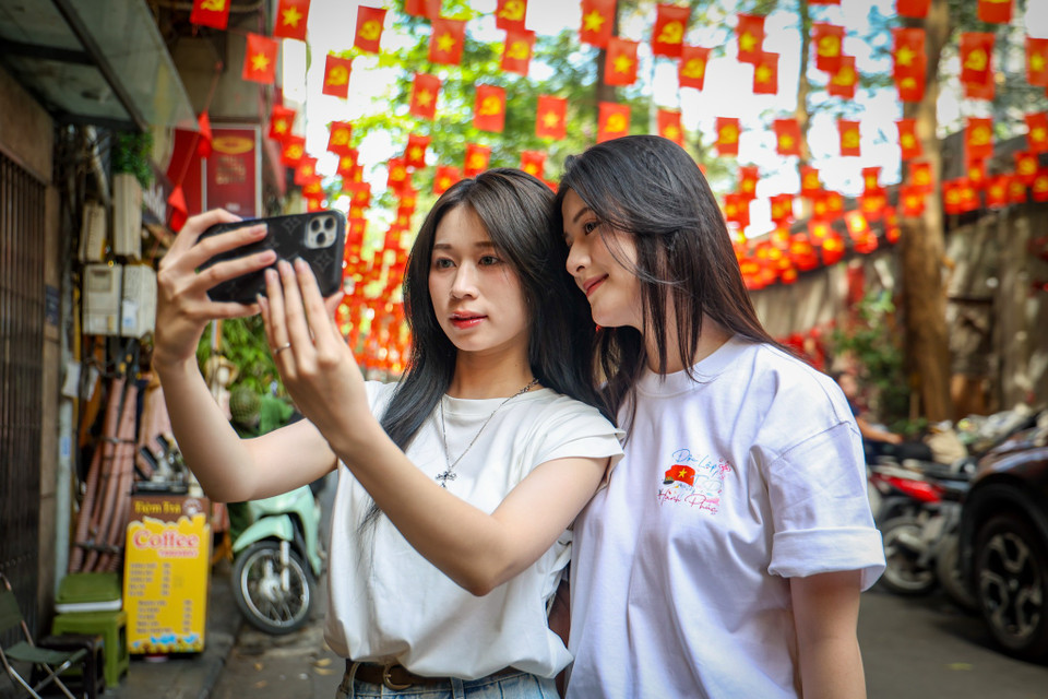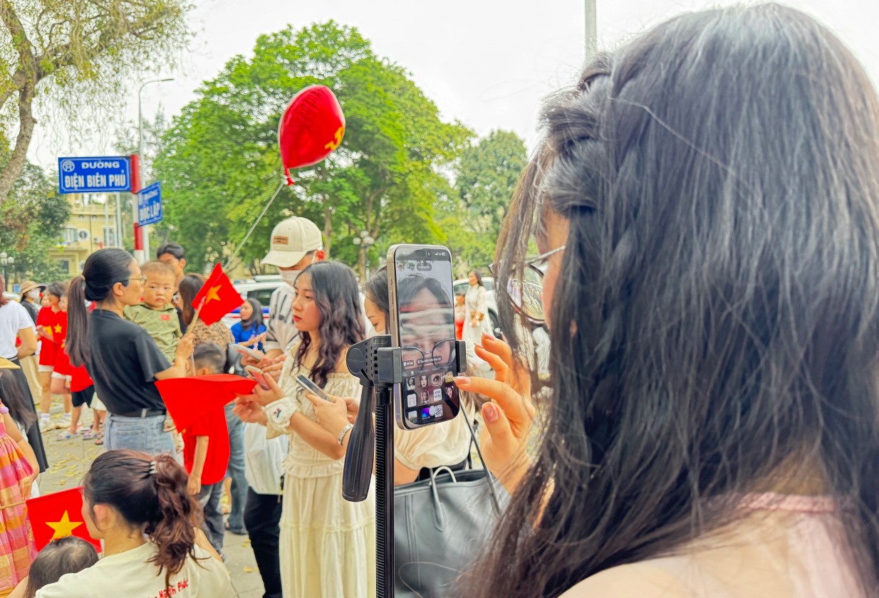 Tại đường Độc Lập và trước Lăng Bác, rất đông người dân trong trang phục áo dài cầm cờ Tổ quốc đứng chụp ảnh kỷ niệm bên ngoài hàng rào. Địa điểm đặc biệt đông vào những hôm thời tiết có nắng đẹp.