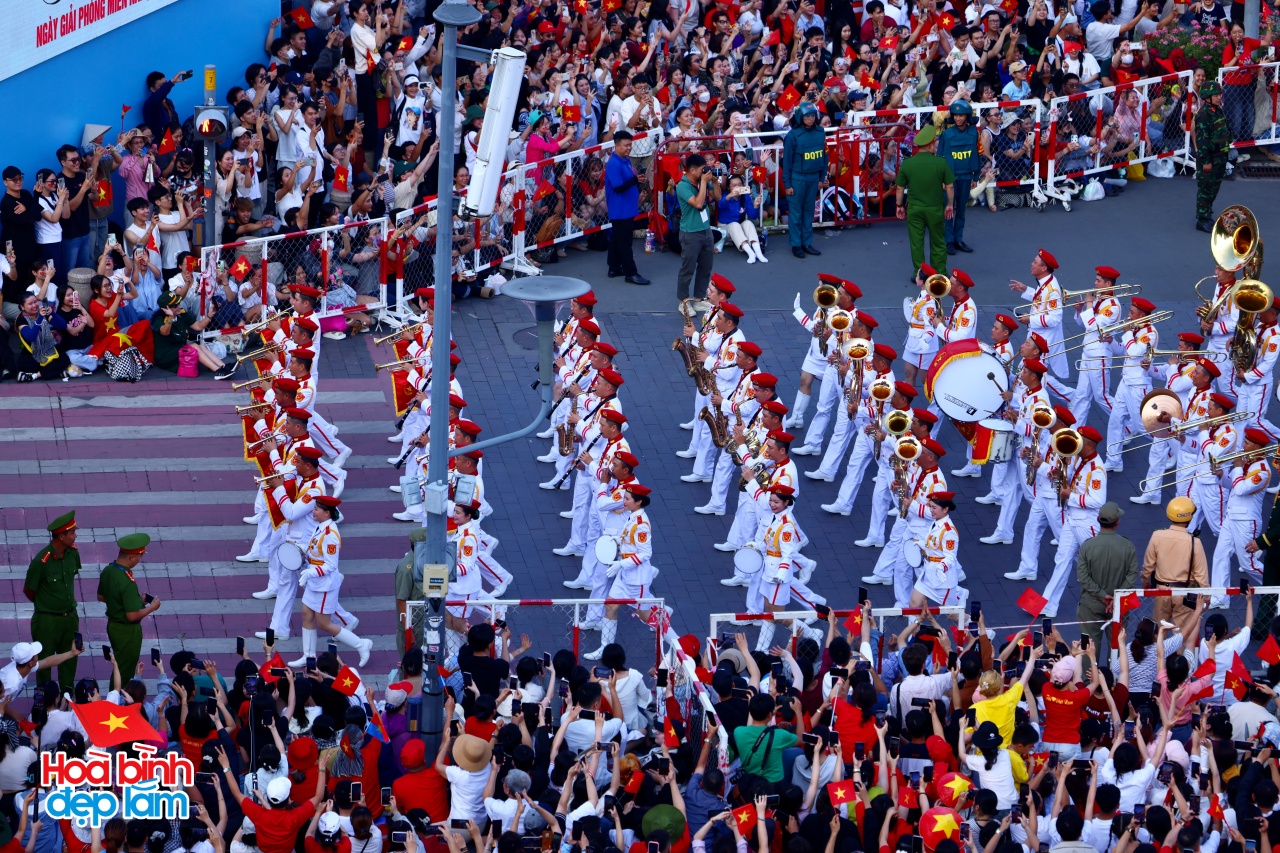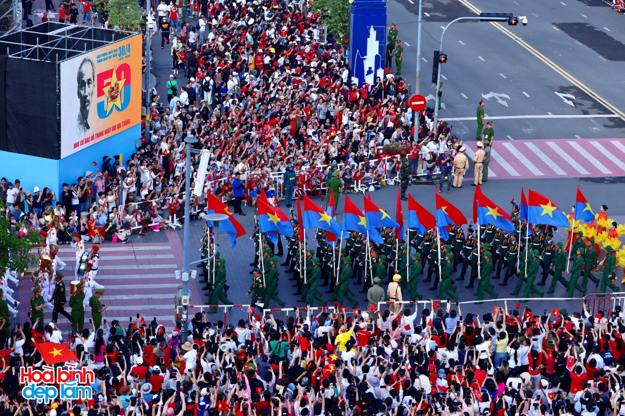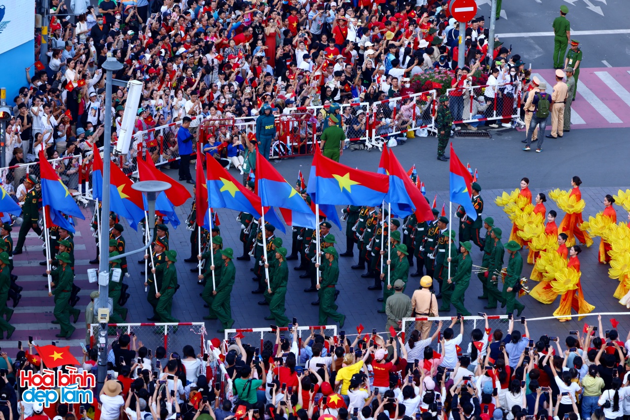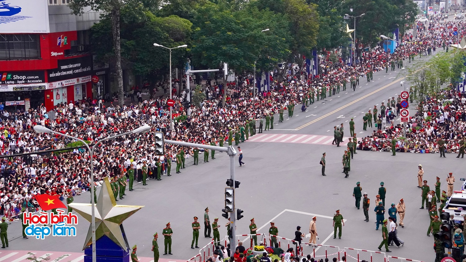 Ngay từ rạng sáng, khi mặt trời còn chưa ló rạng, các tuyến đường trung tâm thành phố đã rợp bóng quân kỳ, sắc phục chỉnh tề của hàng vạn cán bộ, chiến sĩ thuộc các lực lượng vũ trang. Tất cả đều đồng loạt tiến bước với đội hình ngay ngắn, bước chân nhịp nhàng, đều như kẻ chỉ, tạo nên bức tranh diễu binh sống động, hùng tráng và đầy tự hào.