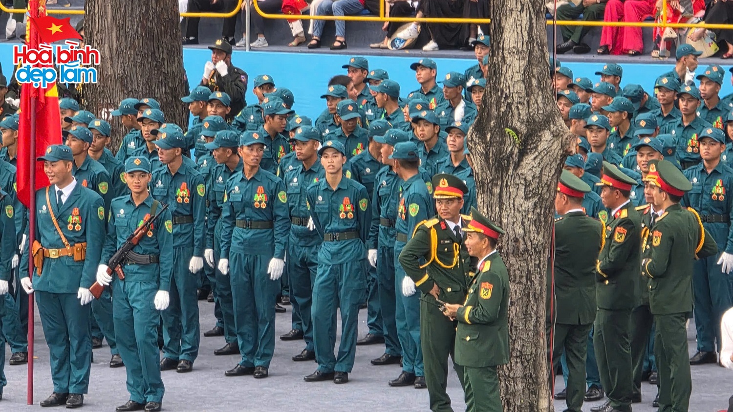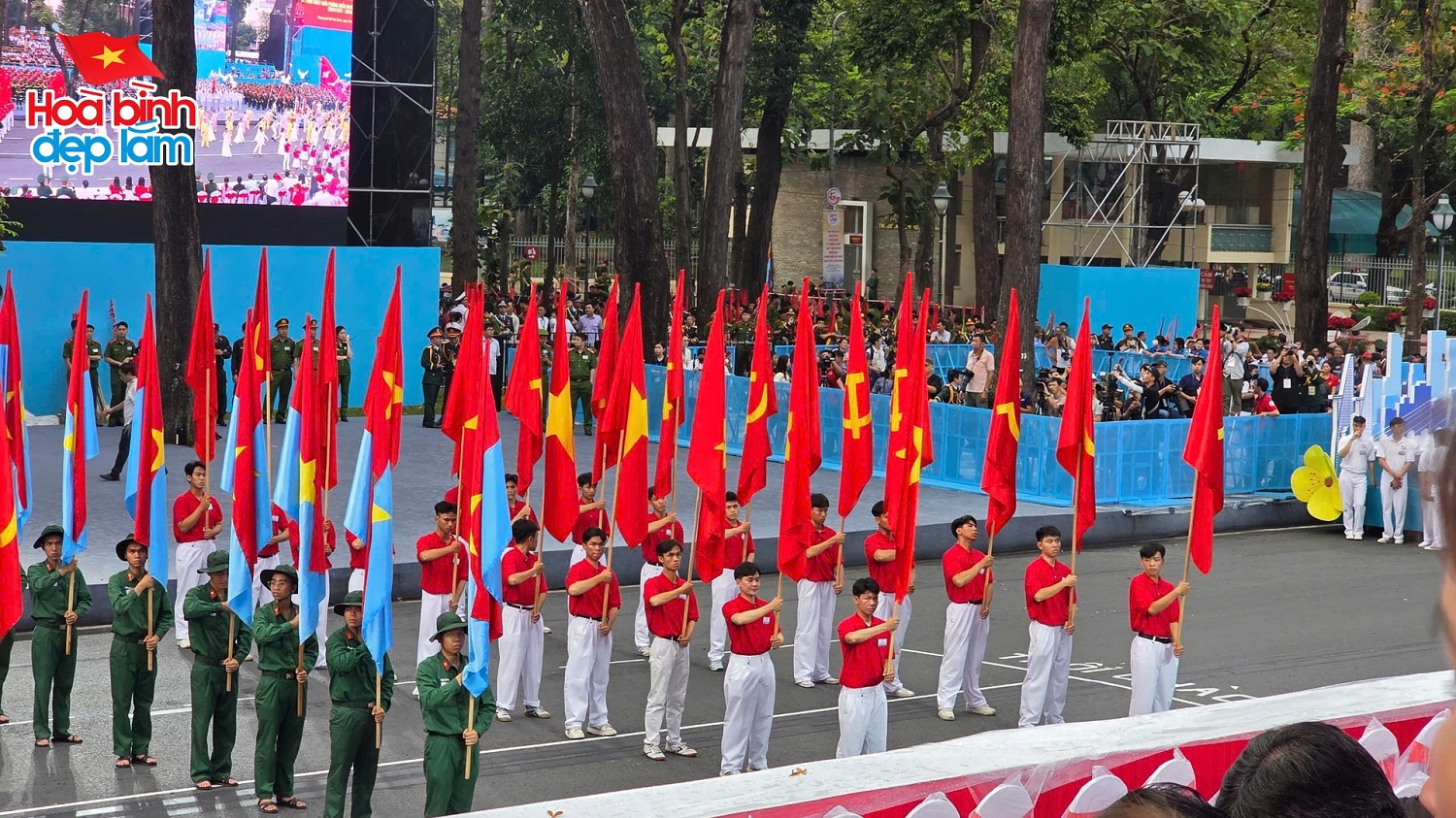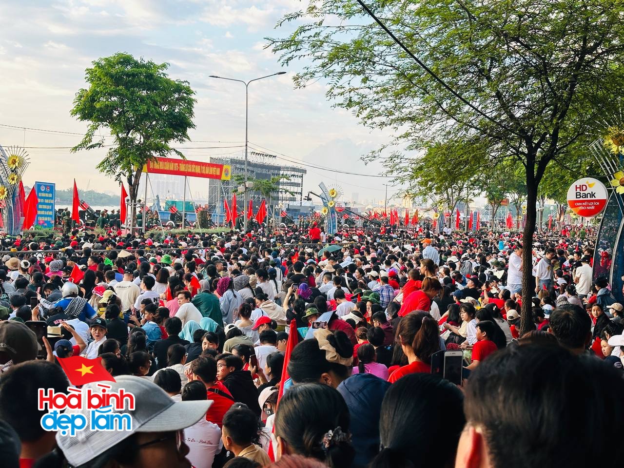 Ngay từ rạng sáng, khi mặt trời còn chưa ló rạng, các tuyến đường trung tâm thành phố đã rợp bóng quân kỳ, sắc phục chỉnh tề của hàng vạn cán bộ, chiến sĩ thuộc các lực lượng vũ trang. Tất cả đều đồng loạt tiến bước với đội hình ngay ngắn, bước chân nhịp nhàng, đều như kẻ chỉ, tạo nên bức tranh diễu binh sống động, hùng tráng và đầy tự hào.