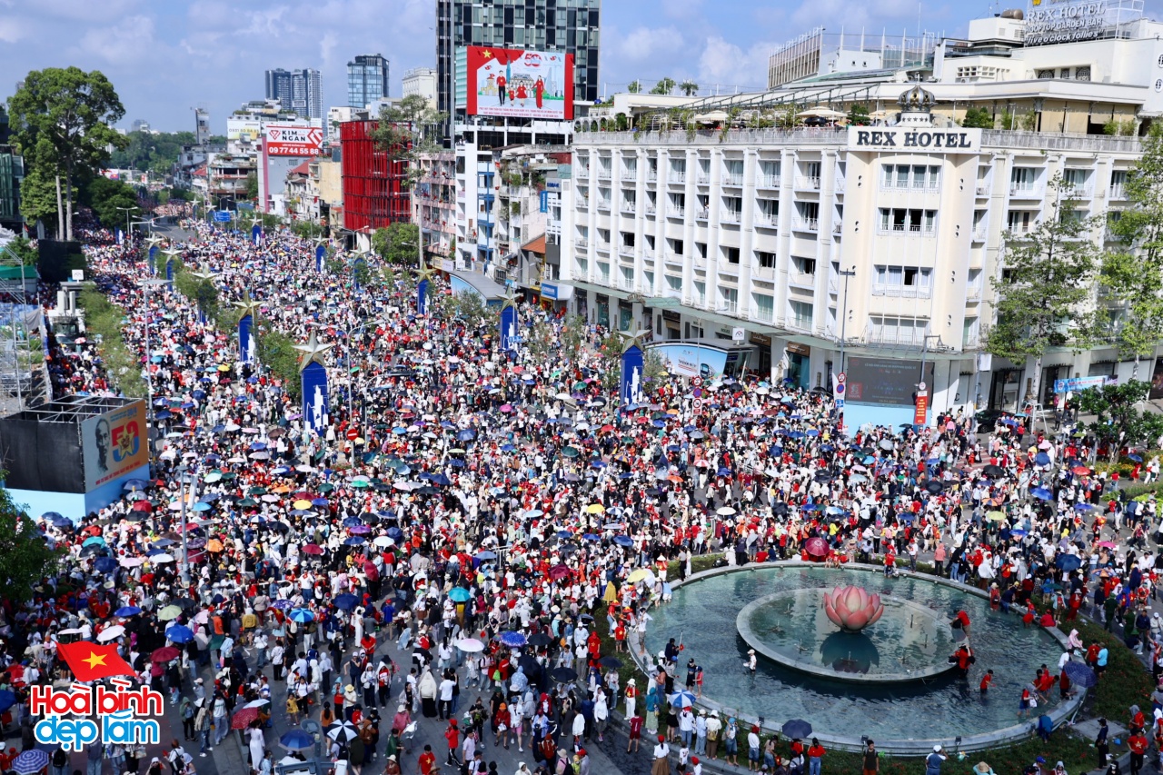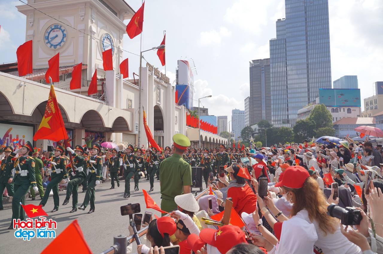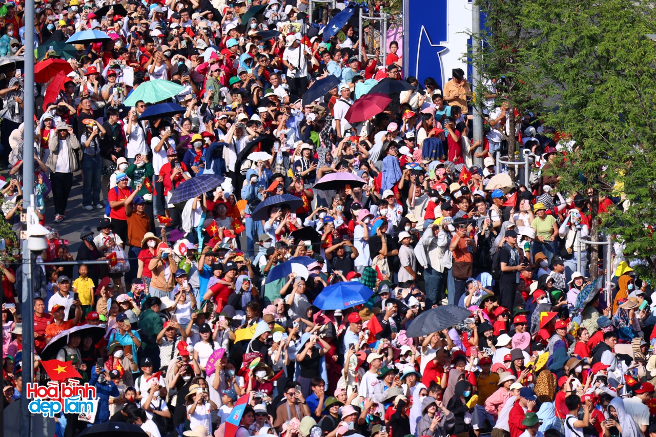 Hàng nghìn người dân hô vang "Việt Nam muôn năm" khi đoàn diễu binh, diễu hành đi qua các tuyến phố trung tâm. Dù thời tiết oi bức, nắng lên cao, nhưng tình yêu với Tổ quốc và niềm tự hào dân tộc đã khiến họ không ngần ngại có mặt từ rất sớm.