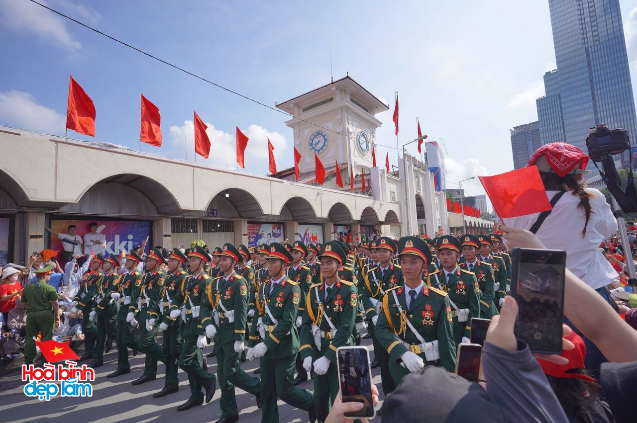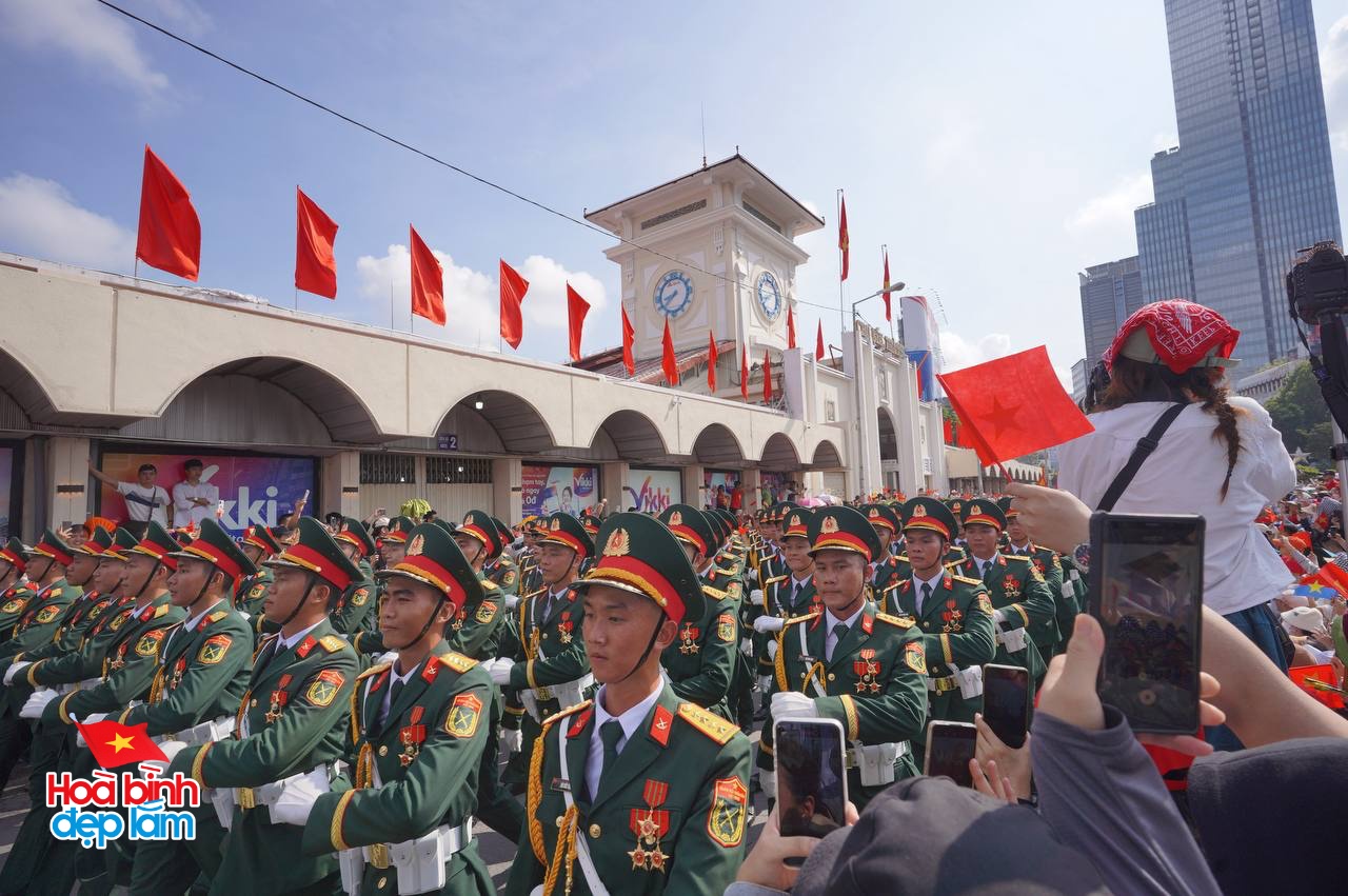 Suốt chiều dài tuyến đường diễu binh, hàng ngàn người dân đã tụ tập, đứng chật kín hai bên lề đường để chiêm ngưỡng. Những ánh mắt rạng ngời tự hào, những tràng pháo tay không ngớt vang lên theo từng đợt lực lượng tiến qua. Nhiều người dân tranh thủ ghi lại từng khoảnh khắc, từng bước chân đẹp như tranh vẽ, để lưu giữ niềm tự hào khó tả trong lòng. Không ít cụ già, cựu chiến binh đã rưng rưng nước mắt khi chứng kiến những lớp người kế tiếp đang nối dài bước chân gìn giữ nền độc lập, tự do mà cha ông đã đổ máu giành được.