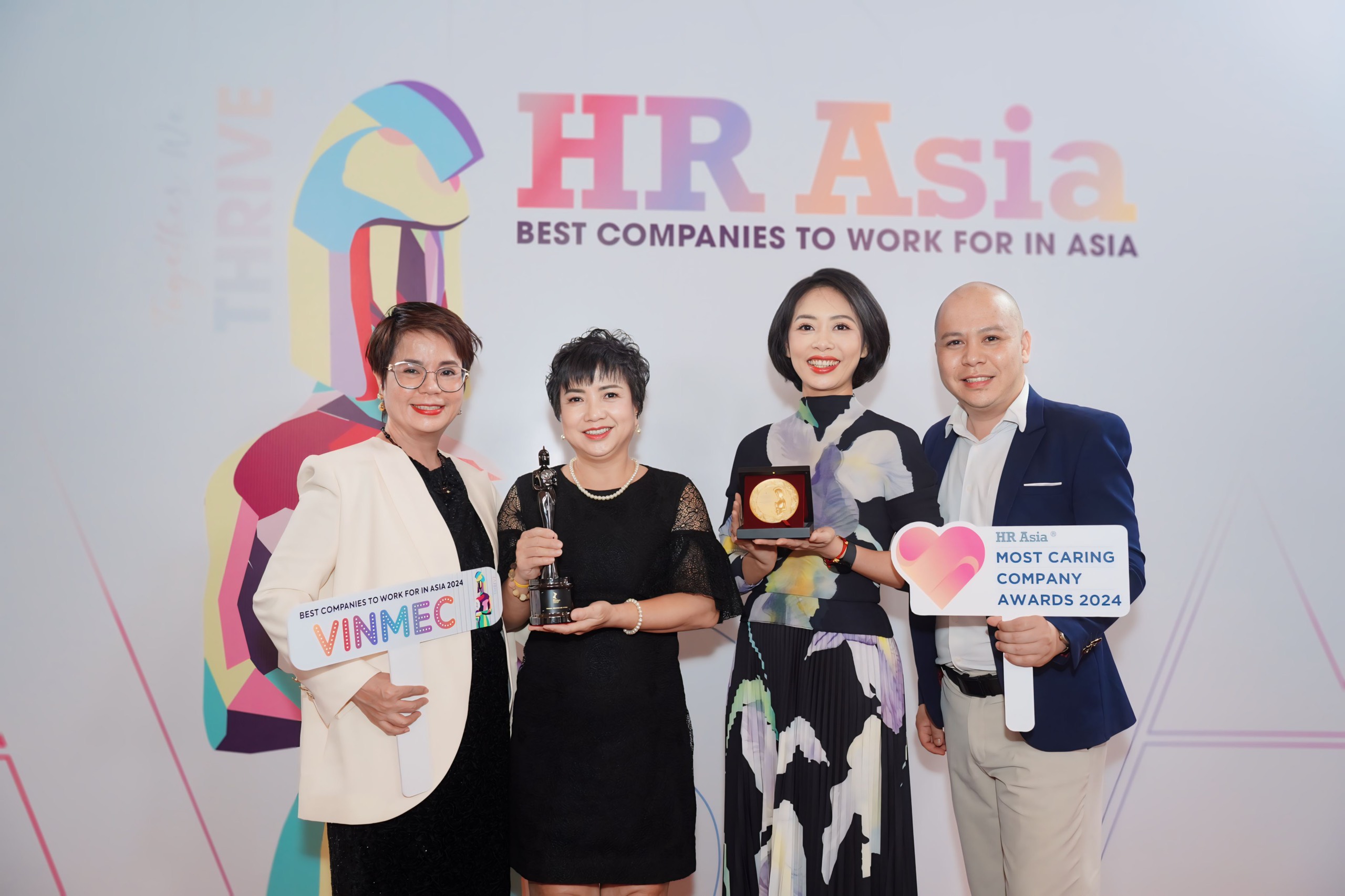 Hà Nội, ngày 8/8/2024, tại Lễ trao giải HR Asia Awards 2024, Hệ thống Y tế Vinmec đã được vinh danh cùng lúc hai giải thưởng: “Nơi làm việc tốt nhất Châu Á - Best Companies to work for in ASIA” và “Doanh nghiệp có chính sách và hoạt động vì chất lượng sức khoẻ, hạnh phúc toàn diện của nhân viên - Most Caring Company Award”. Cú đúp giải thưởng về nhân sự tiếp tục khẳng định sự vượt trội về môi trường làm việc cũng như môi trường phát triển chuyên môn của Vinmec.